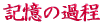 記憶の過程は、記銘、保持、想起の三段階に分けることが出来ます。 「記銘」とは外部の刺激がもつ情報を意味に変換して記憶として取り込むこと、「保持」とは記銘したものを保存しておくことで、「想起」とは保存されていた記憶をある期間後に外に表すことです。
