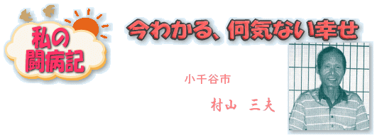 検査の結果つけられた病名は「食道がん」でした。「それはショックだったさ。『ガーン』ときたよ。でもこうなったら、お医者さんに任せるしかないでしょ。覚悟ができたよ」。当時のことを村山さんはこう振り返ります。