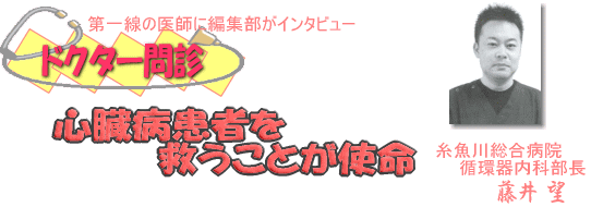 | 今回は、いつも冷静沈着、そして穏やかで地域の皆さんに信頼されている、糸魚川総合病院の藤井望先生にお話を伺いました。 |